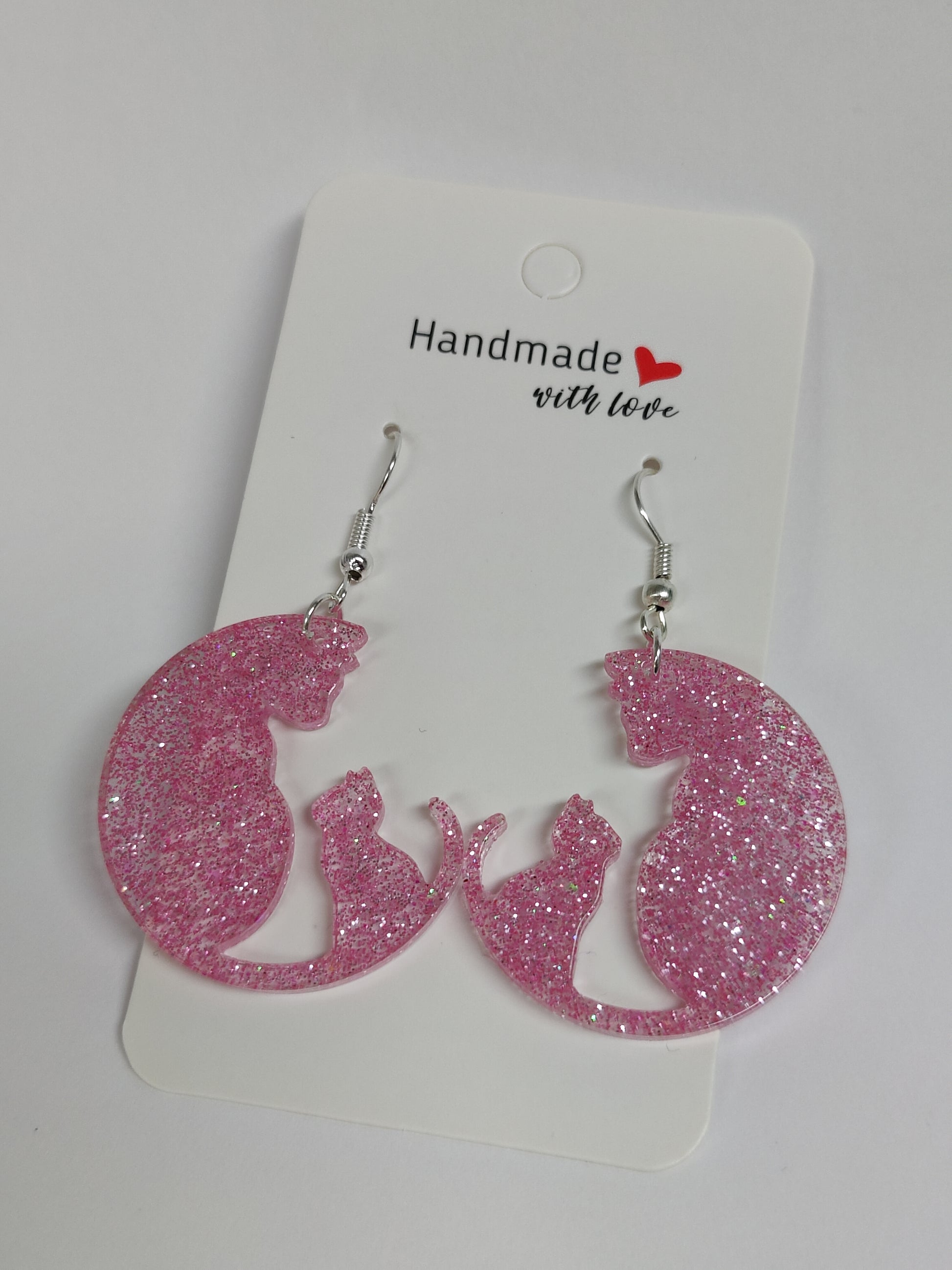 Koruhartsista käsintehdyt kissa-aiheiset korvakorut, jollaisia ei varmasti tule toisia vastaan sillä jokainen koru on uniikki ja Jyväskylässä yhden naisen puodissa valmistettu.