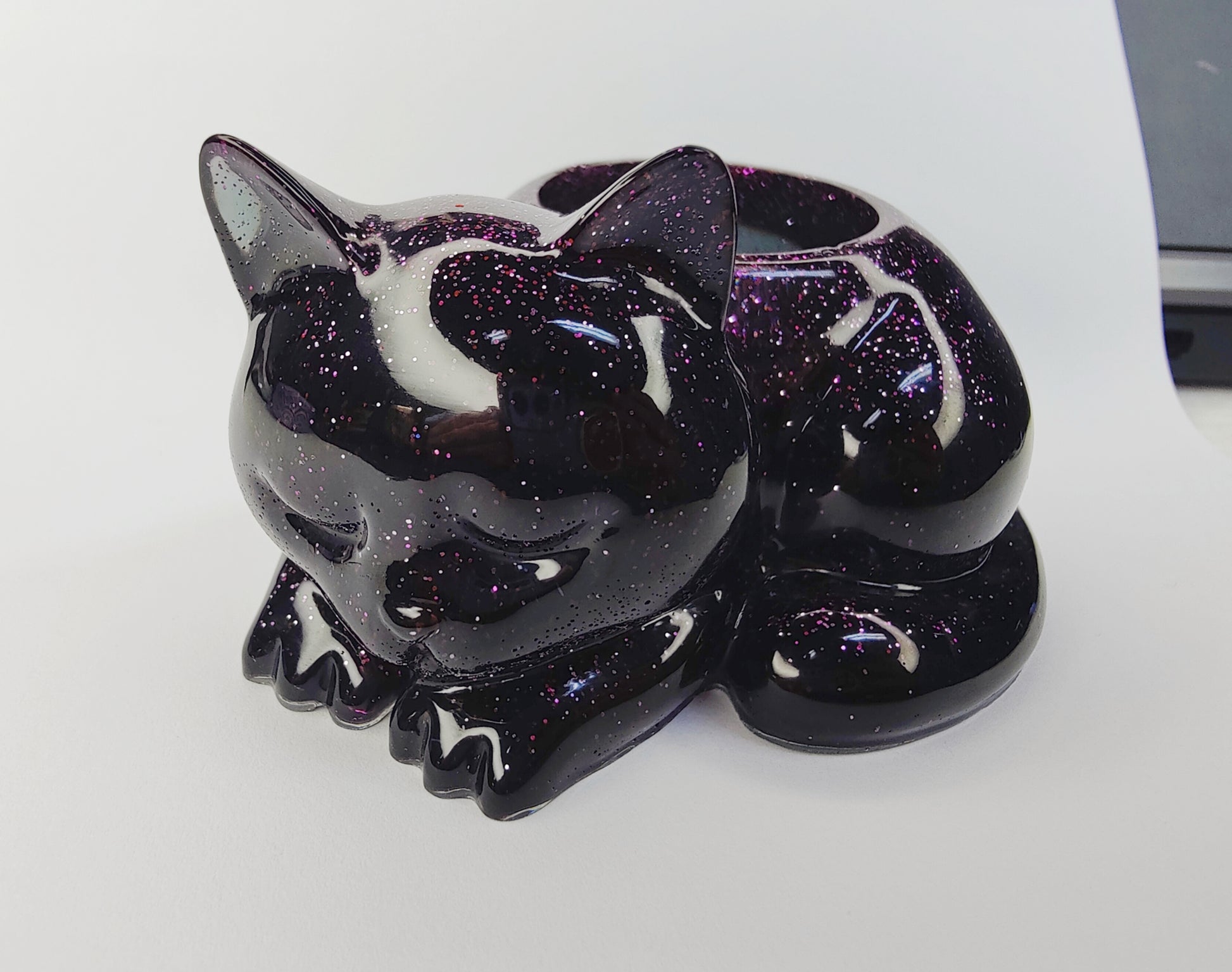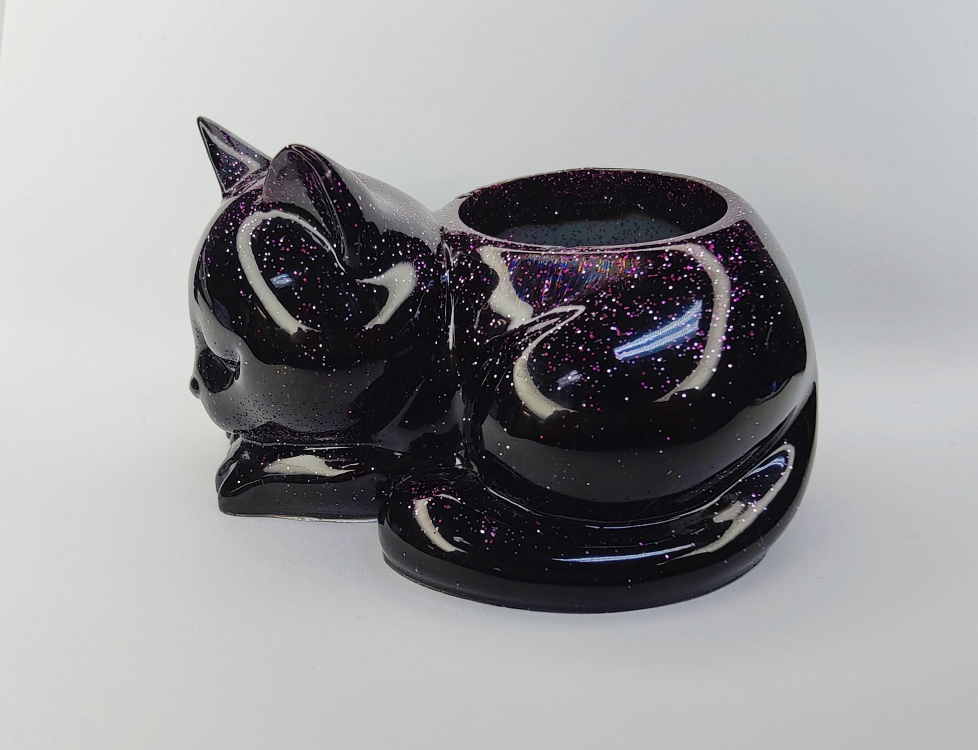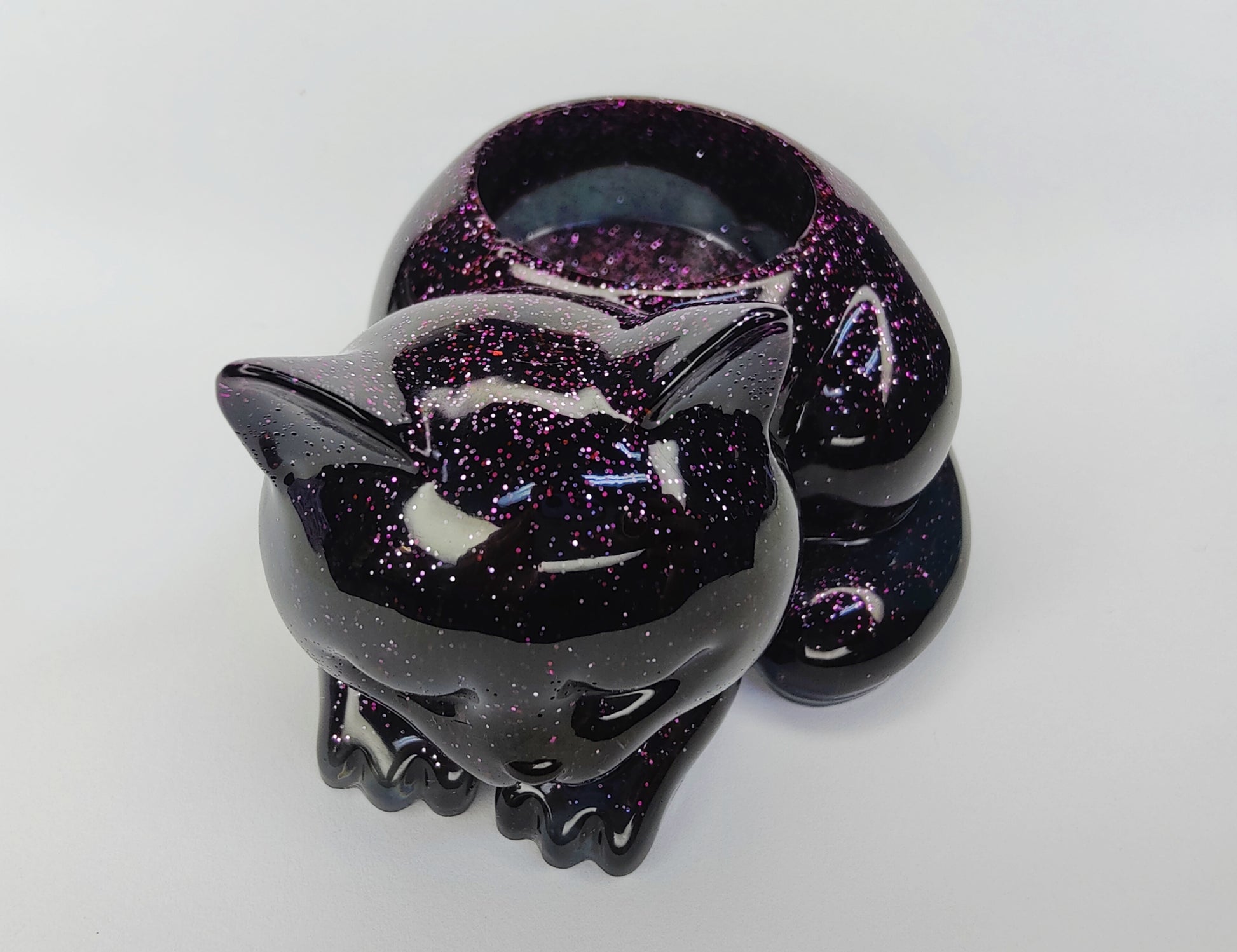 Tuikkukuppi lepäävä kissa, musta violetti