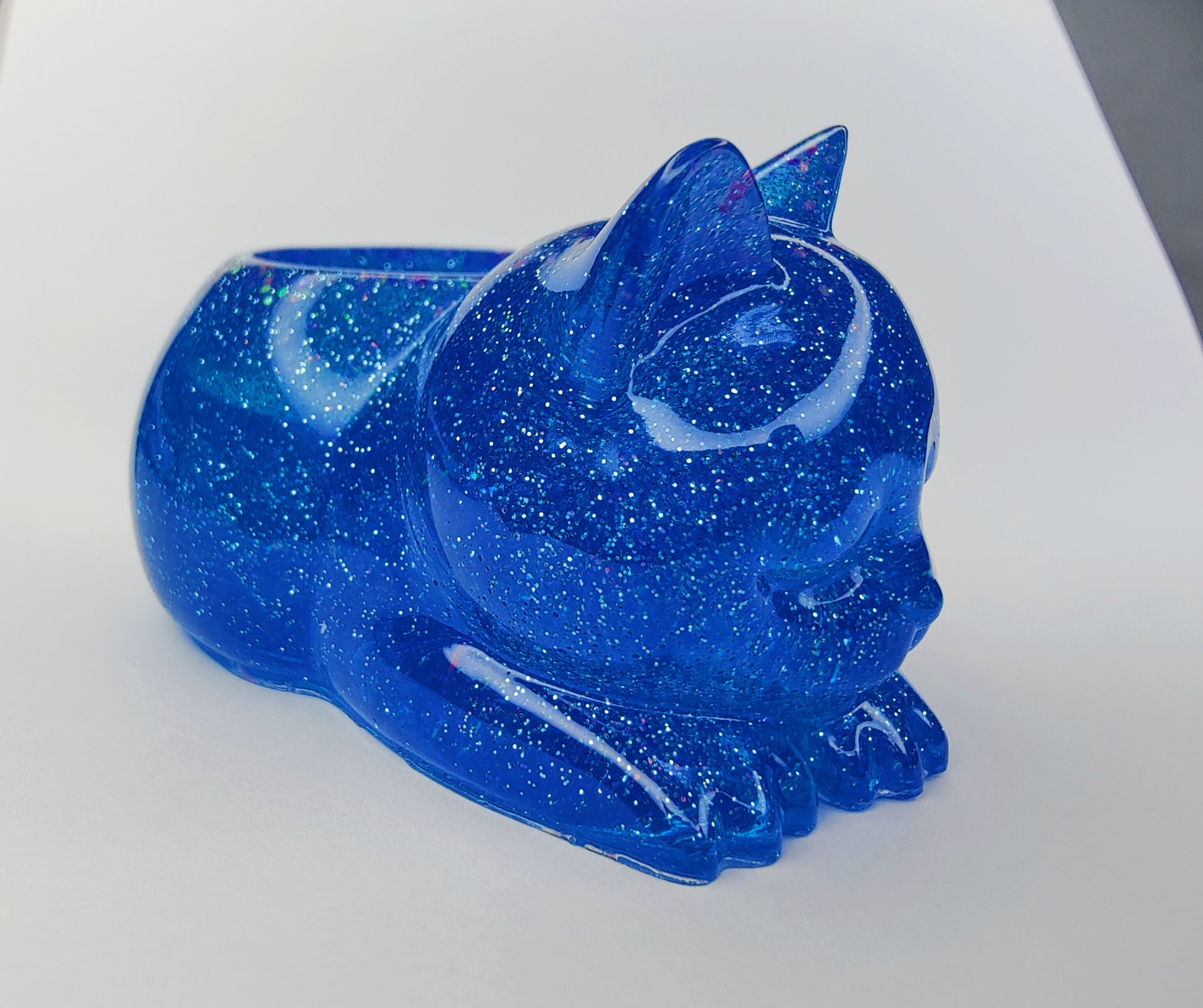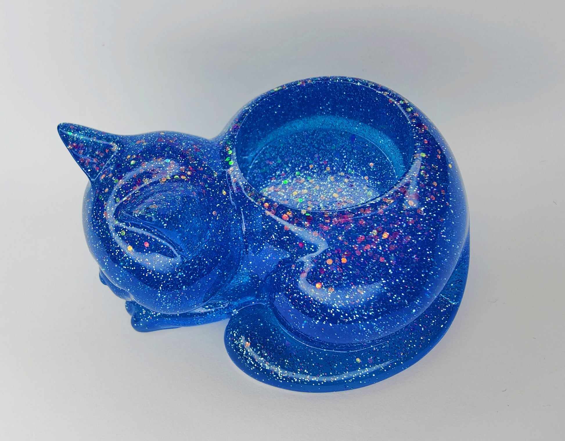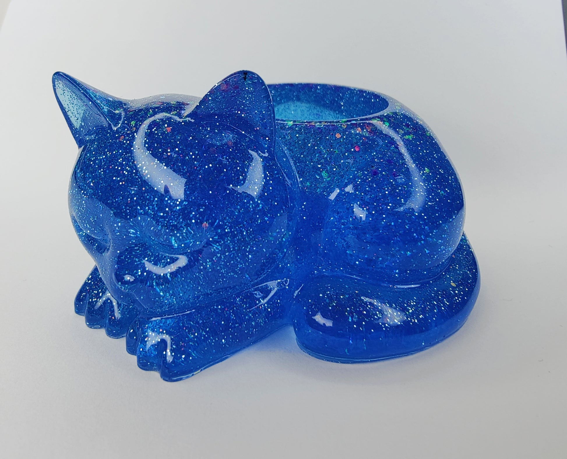 Kaunis kissa-aiheinen tuikkukuppi, jossa upea sävy ja kimaltava glitter- koristelu.