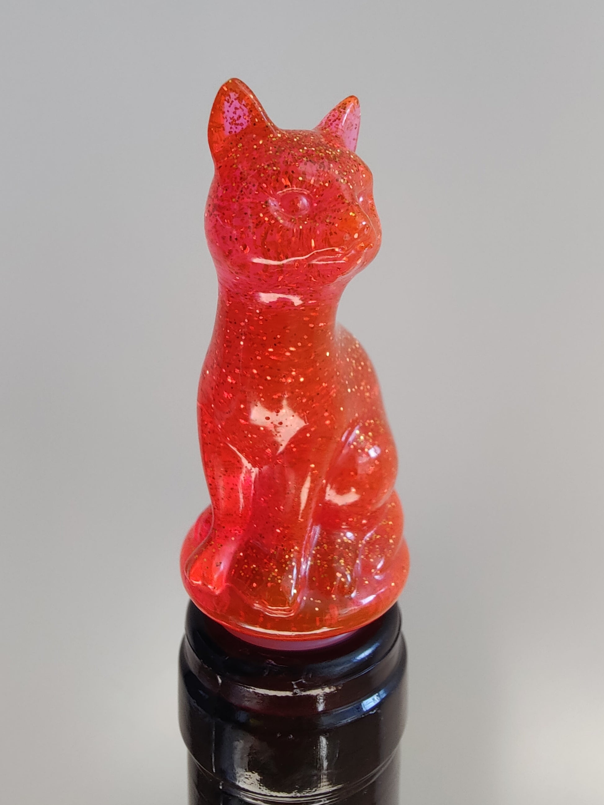 Kaunis kissa-aiheinen pullonkorkki viinipullon sulkemiseen.