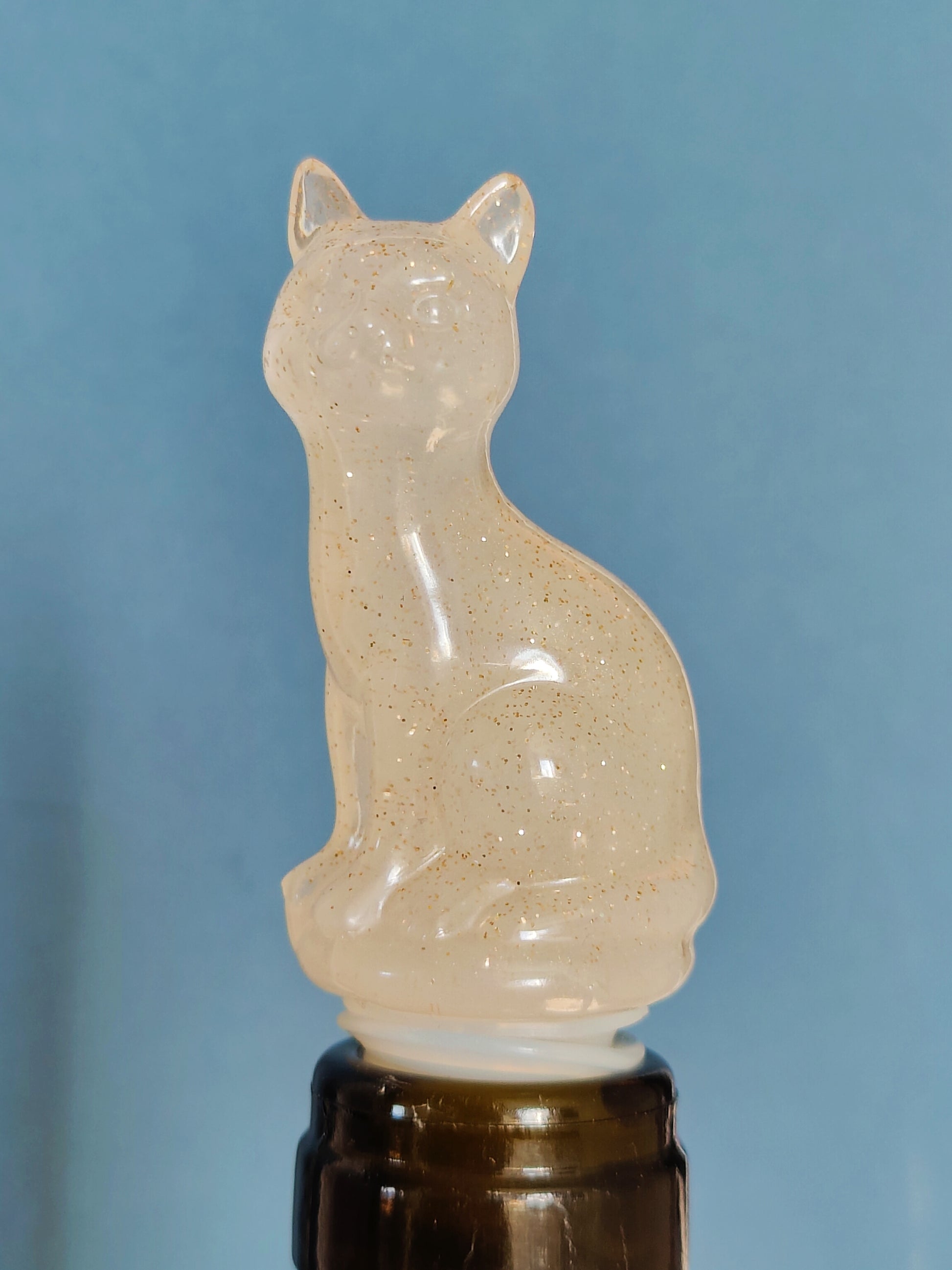 Kaunis kissa-aiheinen pullonkorkki viinipullon sulkemiseen.